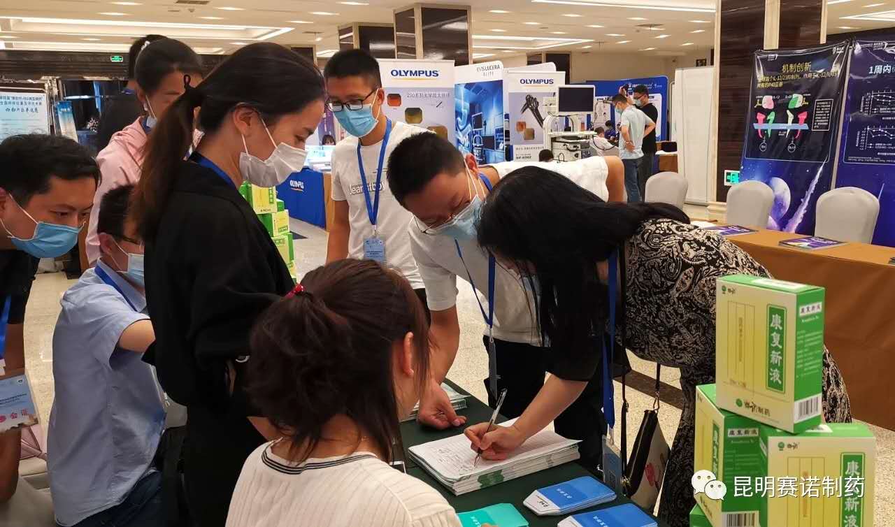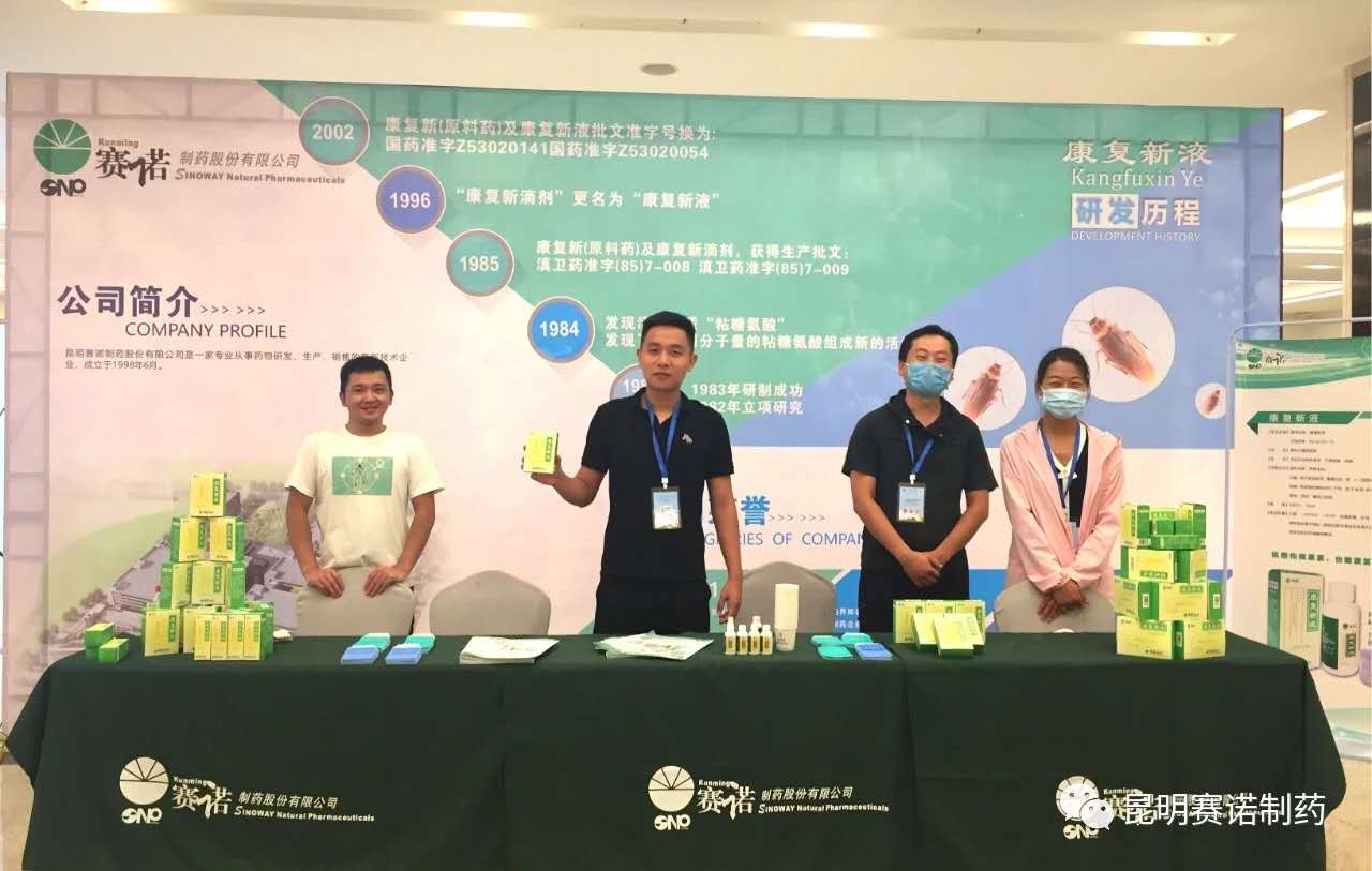 會議設置展區陳列,多家知名藥企匯聚于此,賽諾制藥作為昆明本土企業,向參會的各方人員,展示了我公司原研產品康復新液。