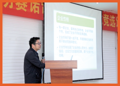 決賽當天,公司銷售副總孫總、行政人力副總董總、財務副總程總作為決賽評委出席了比賽活動,領導們也針對比賽提出了意見與建議:培訓工作,是企業發展、成長中必不可少的部分,建設自己的培訓師隊伍,有利于員工更加方便、快速的掌握業務知識及公司產品知識,有利于各部門業務知識的強化與提升,通過培訓比賽,部分員工的培訓能力有了較全面的展示,但培訓是一項綜合能力要求較高的工作,我們仍需加強培訓能力的培養和鍛煉,組建出自己的人才隊伍。